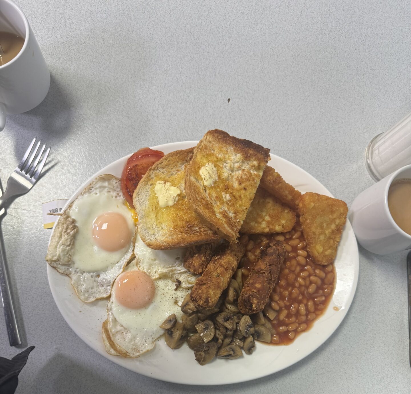 The cafe was busy but that added to the atmosphere and the service was speedy. My friend ordered a vegetarian breakfast this included a veggie burger, egg, hash browns, mushrooms, grilled tomato or beans which was so filling (I had mine and a bit of hers).