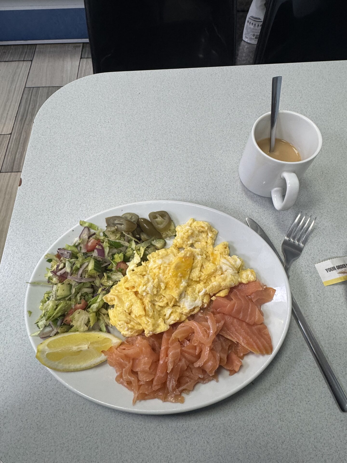 I headed down to Billingsgate cafe on Good Friday and had a lovely salmon breakfast, at first I was hesitant because the first and last time I had tried salmon I was definitely not a fan but I was so pleasantly surprised at how delicious and fresh my breakfast was. A good portion sized breakfast accompanied by salad, scrambled egg and a cup of tea.